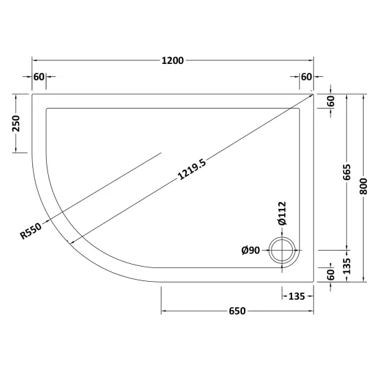 Slip Resistant Offset Quadrant Slimline Shower Tray Left Hand 1200 x 800mm