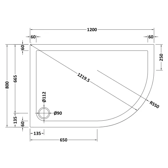 Slip Resistant Offset Quadrant Slimline Shower Tray Right Hand 1200 x 800mm