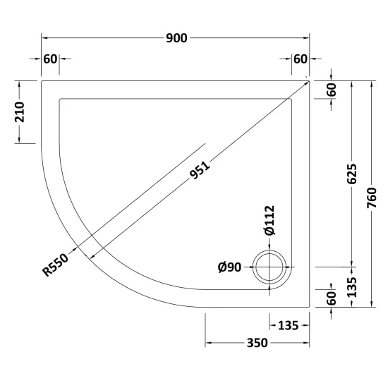 Slip Resistant Offset Slimline Quadrant Shower Tray Left Hand 900 x 760mm