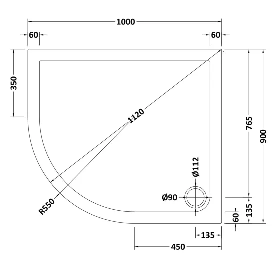 Offset Quadrant Slimline Shower Tray Left Hand 1000 x 900mm