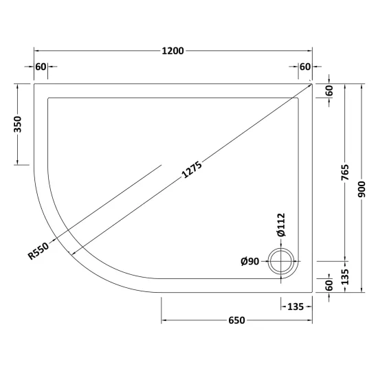 Offset Quadrant Slimline Shower Tray Left Hand 1200 x 900mm