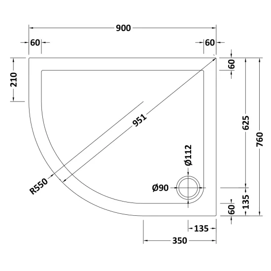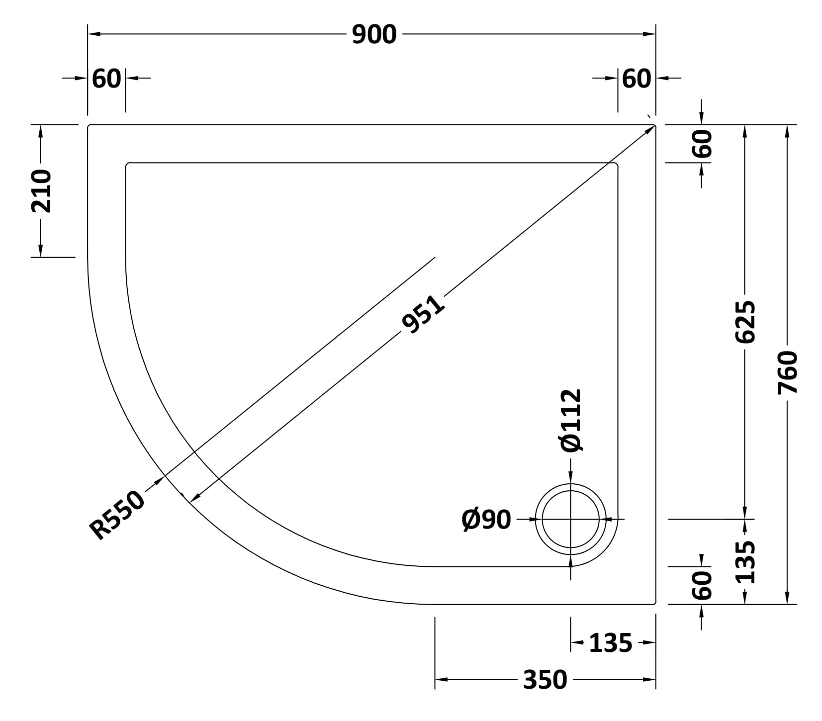 Offset Quadrant Slimline Shower Tray Left Hand 900 x 760mm
