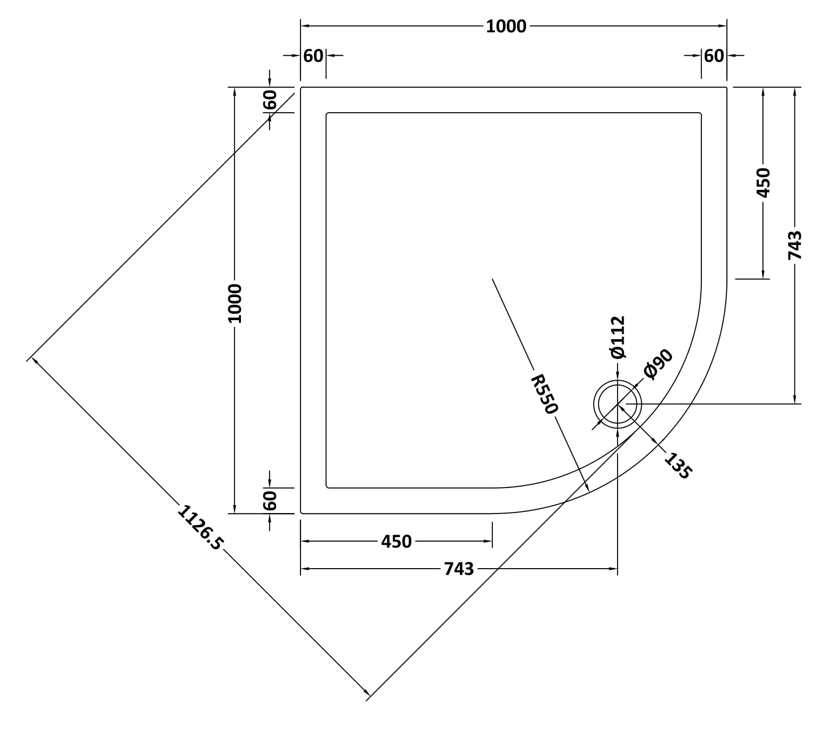 Quadrant Slimline Shower Tray 1000 x 1000mm