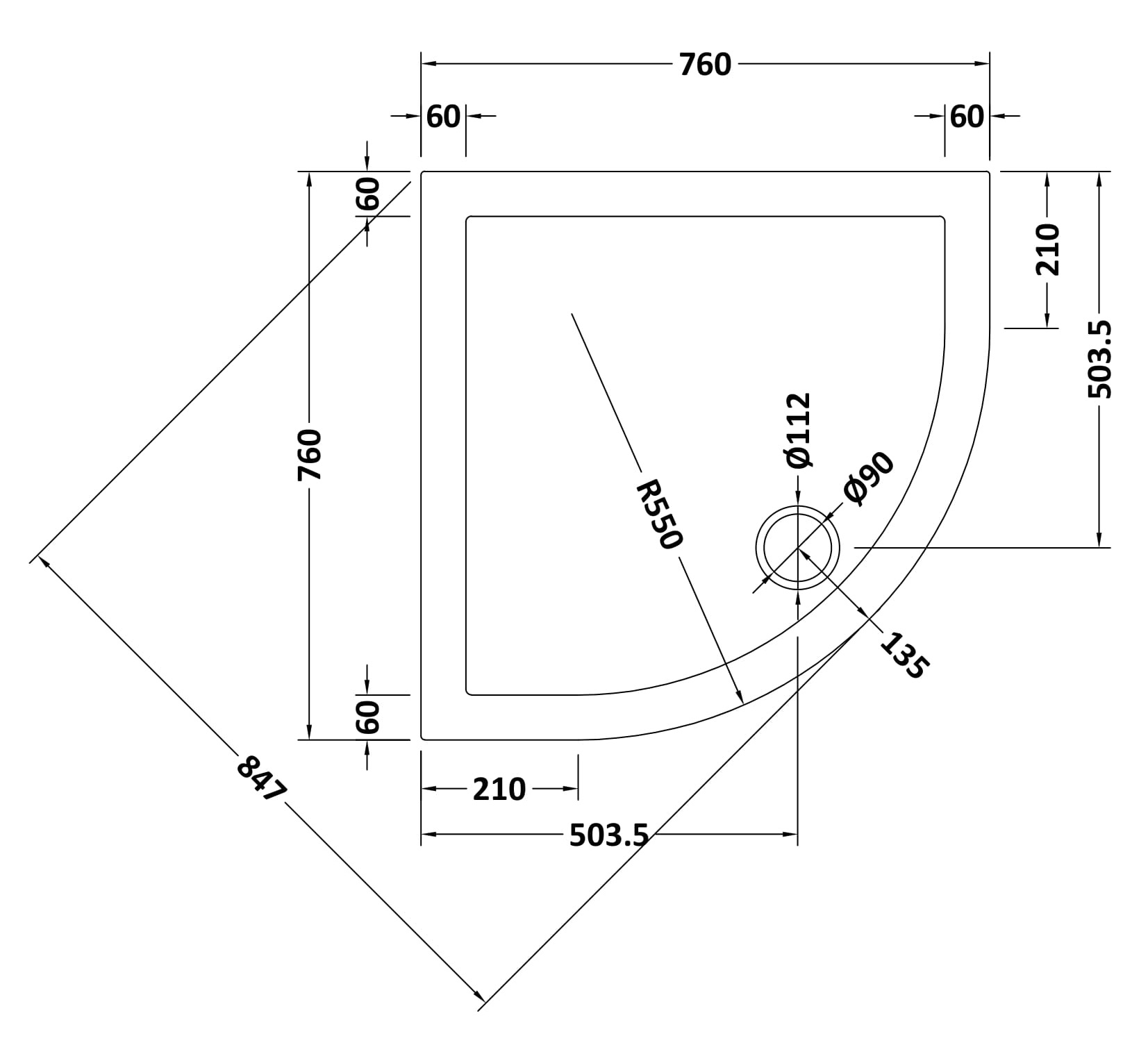 Quadrant Slimline Shower Tray 760 x 760mm