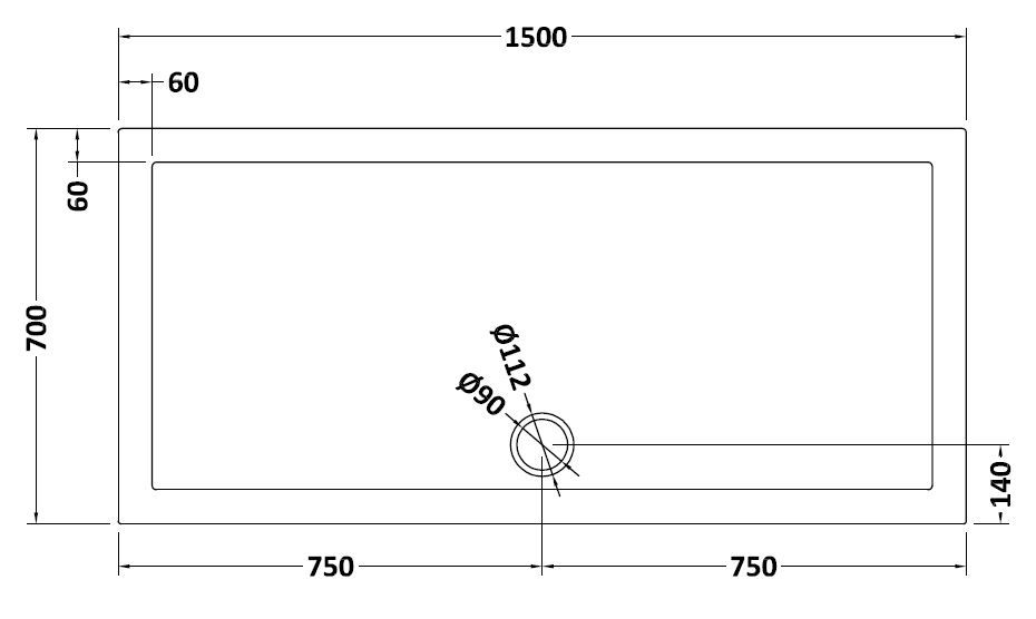 Rectangular Slimline Shower Tray 1500 x 700mm