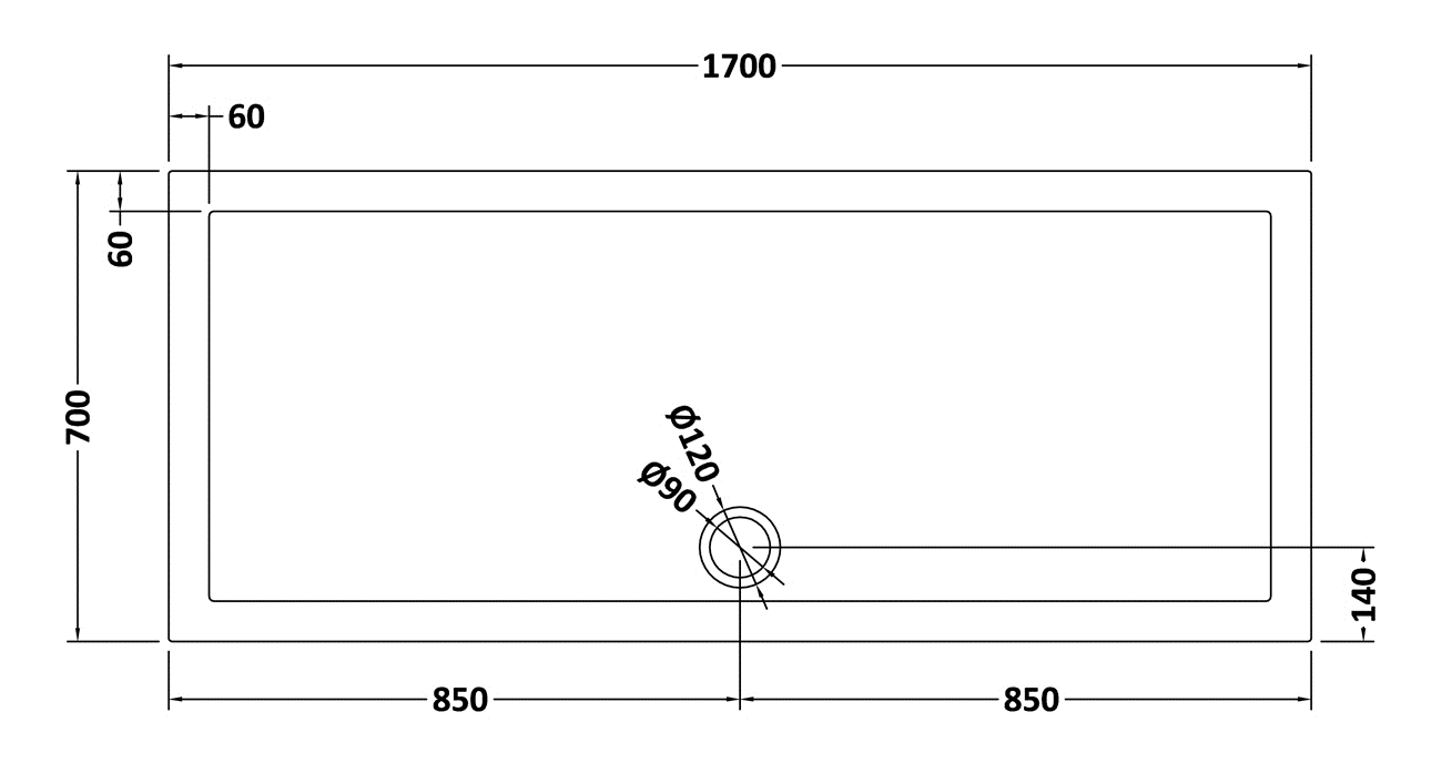 Rectangular Slimline Shower Tray 1700 x 700mm