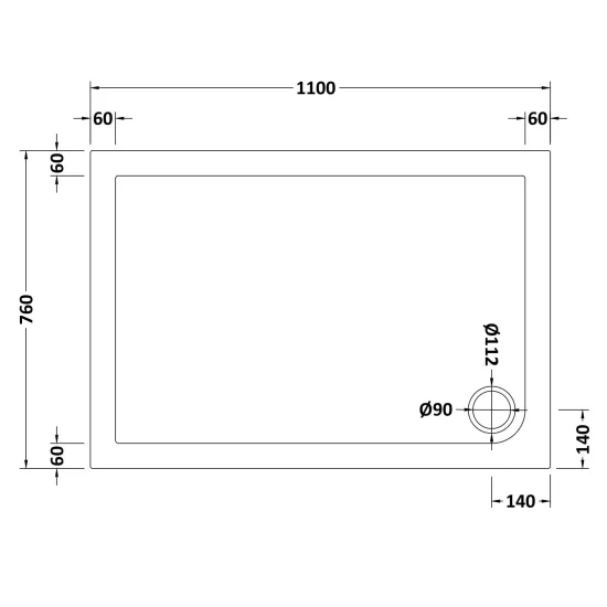Slip Resistant Rectangular Slimline Shower Tray 1100 x 760mm