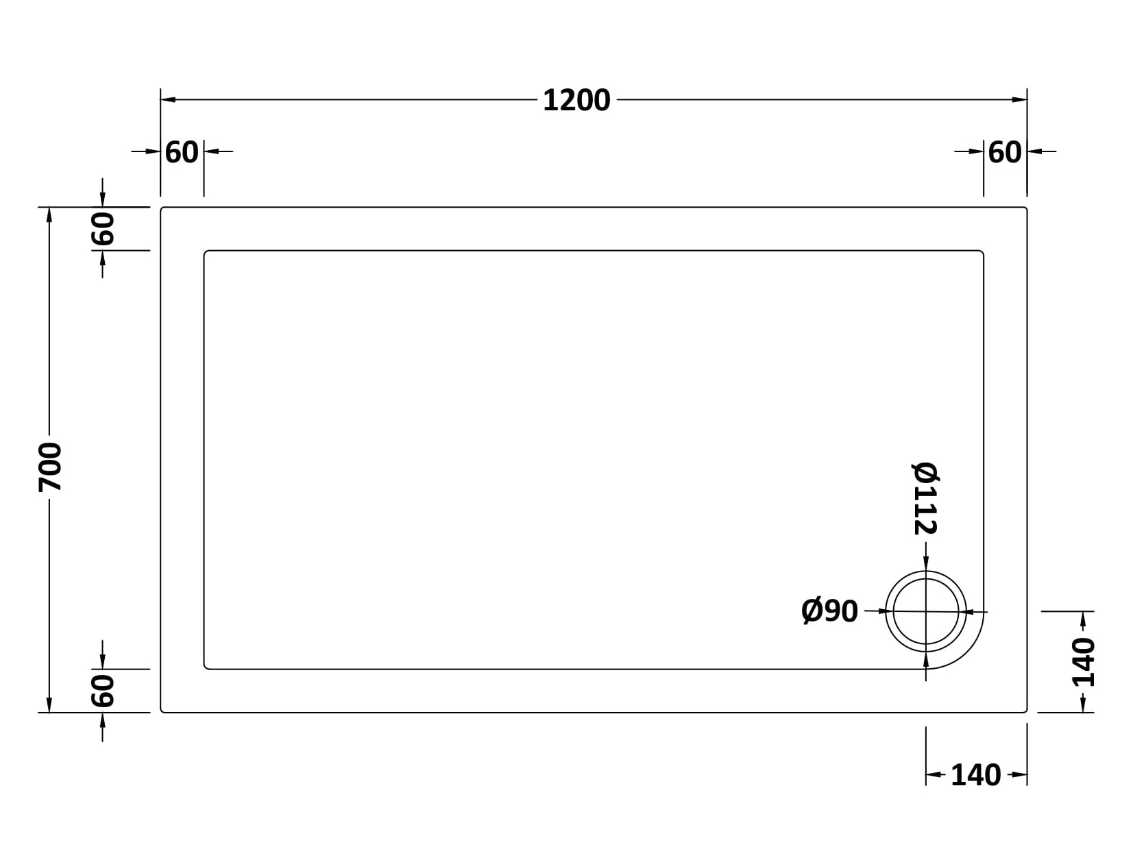 nuie Slip Resistant Rectangular Slimline Shower Tray 1200 x 700mm - White