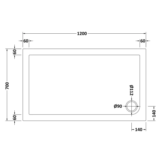 Slip Resistant Rectangular Slimline Shower Tray 1200 x 700mm