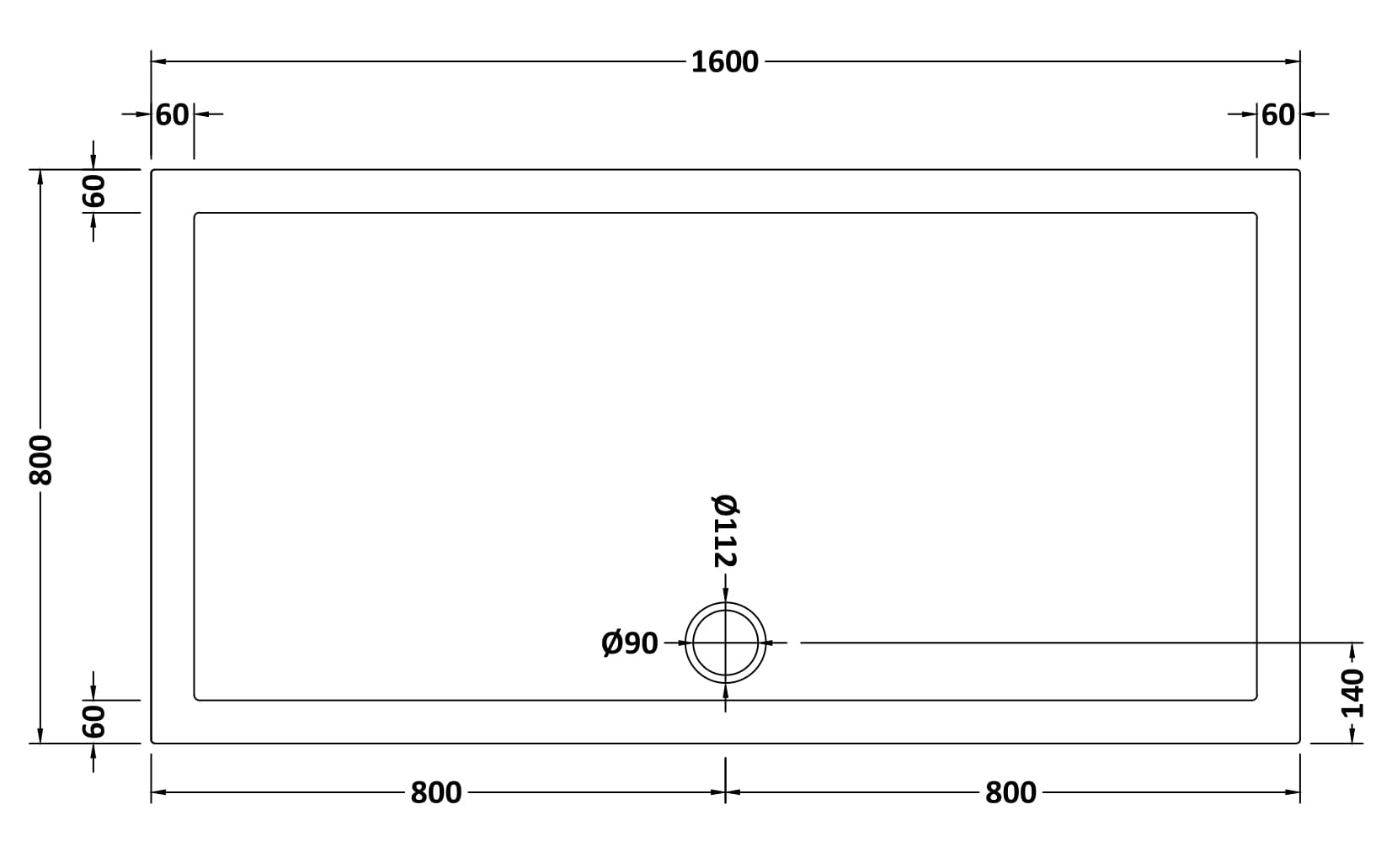 Slip Resistant Rectangular Slimline Shower Tray 1600 x 800mm