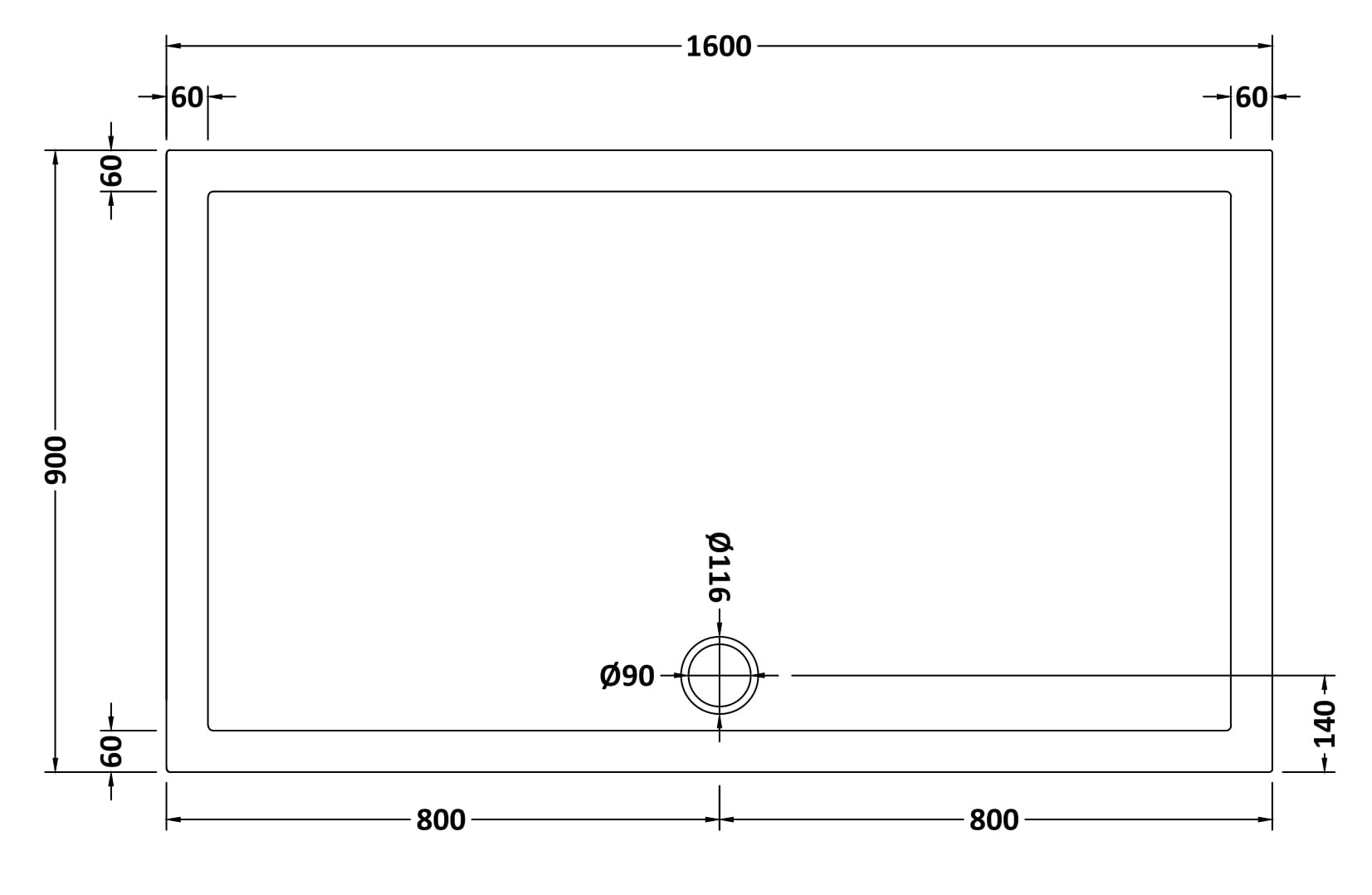 Slip Resistant Rectangular Slimline Shower Tray 1600 x 900mm