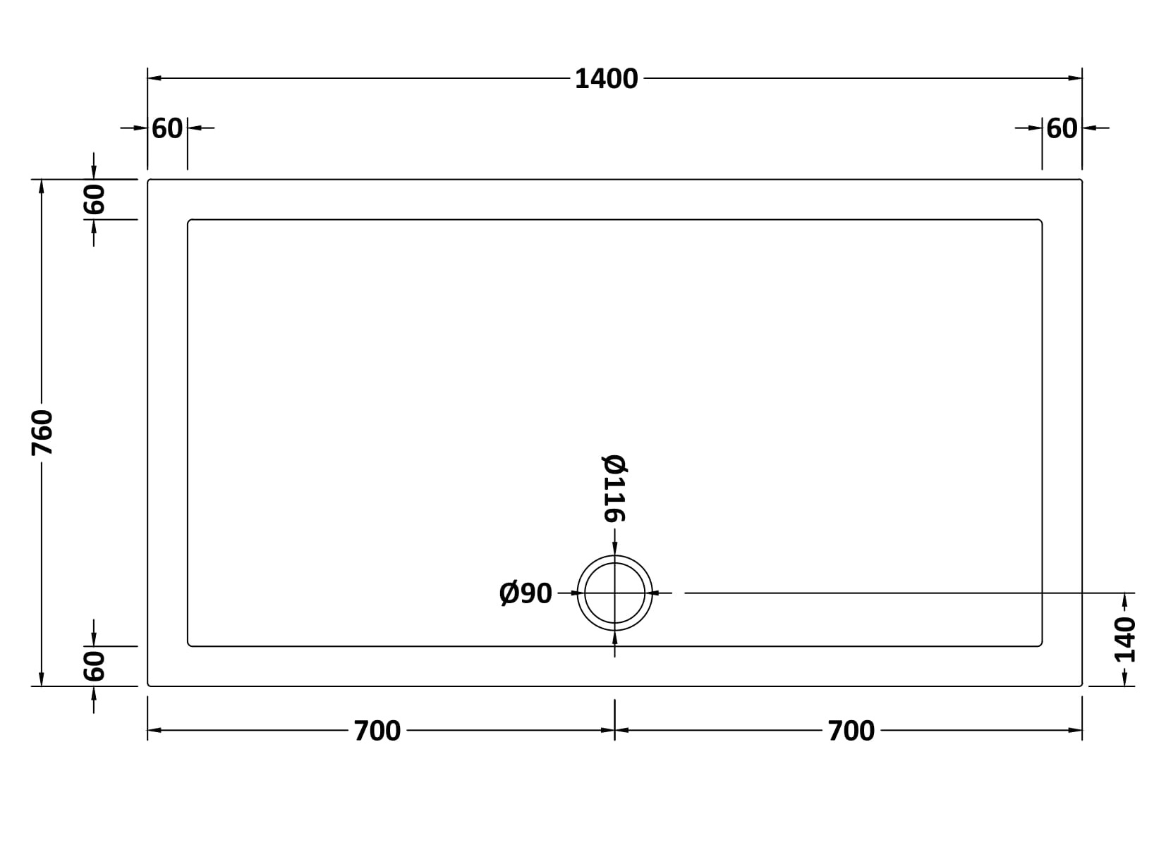 Rectangular Slimline Shower Tray 1400 x 760mm