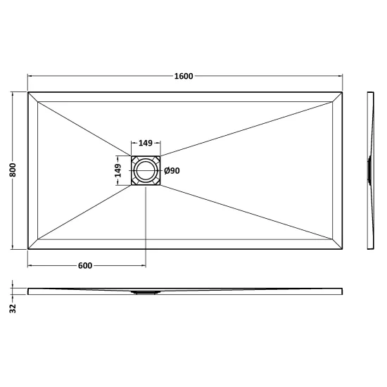 Rectangular Slimline Shower Tray 1600 x 900mm