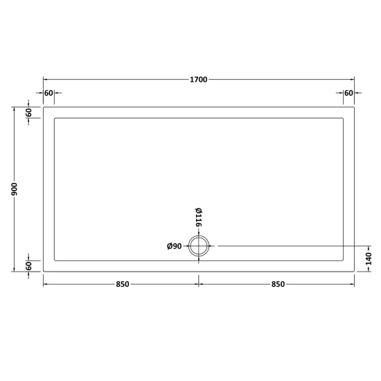 Rectangular Slimline Shower Tray 1700 x 900mm