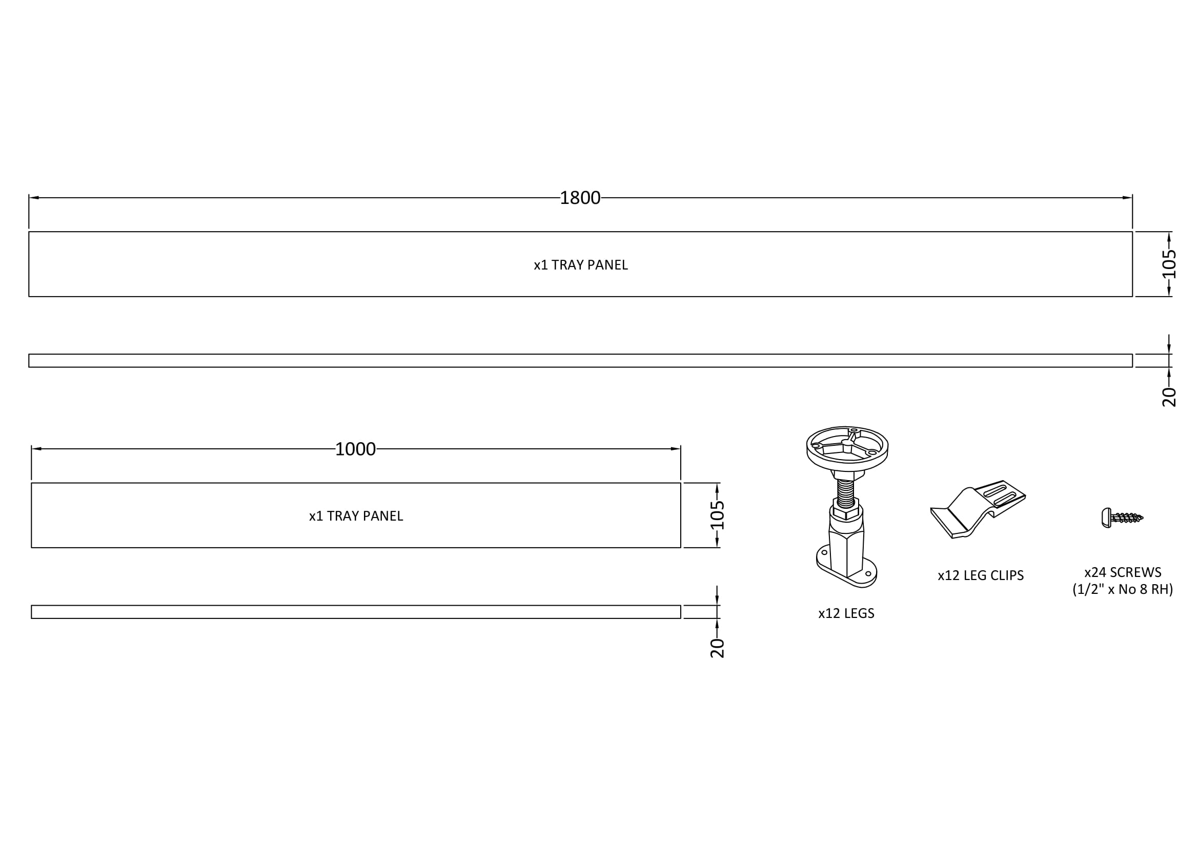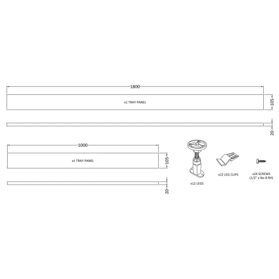 The leg set turns the Pearlstone tray into an easy-plumb tray. Leg sets can be fitted with a battery powered driver - no need for pilot holes. Suitable for use with selected rectangular Pearlstone trays.