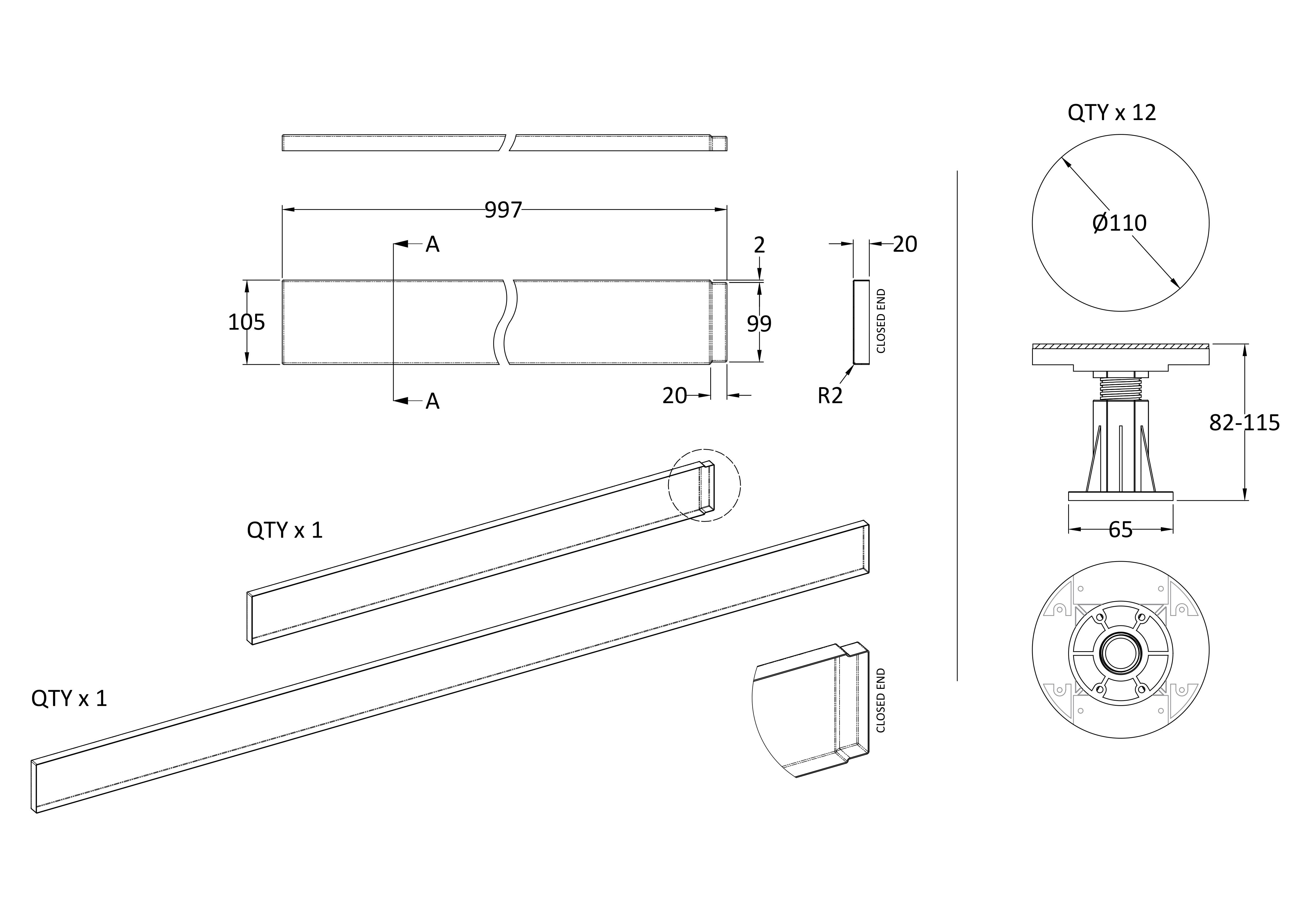 Leg sets designed for use with Pearlstone shower trays. Supplied with plinth, legs, clips and screws. Suitable for use with 1300mm to 1800mm Rectangular & Walk in Trays.