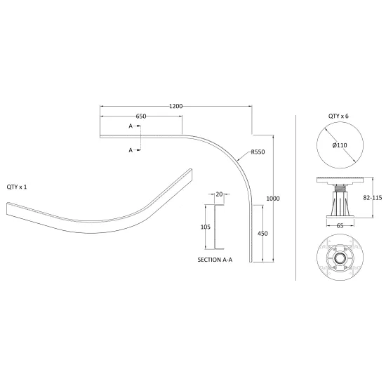 Leg Set Suitable for 1000-1200mm Quadrant & Offset Quadrant Trays
