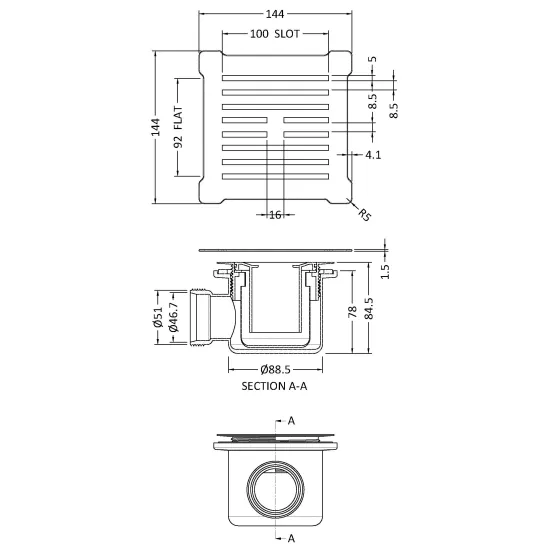 nuie Square Shower Waste Chrome Top - Chrome/Black