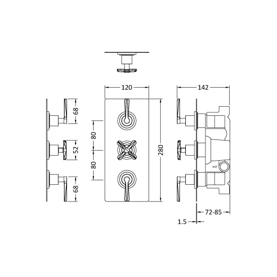 Aztec Triple Thermostatic Concealed Shower Valve with Diverter - 3 Outlet