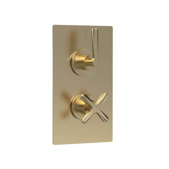 nuie Aztec Twin Thermostatic Concealed Shower Valve - 1 Outlet - Brushed Brass