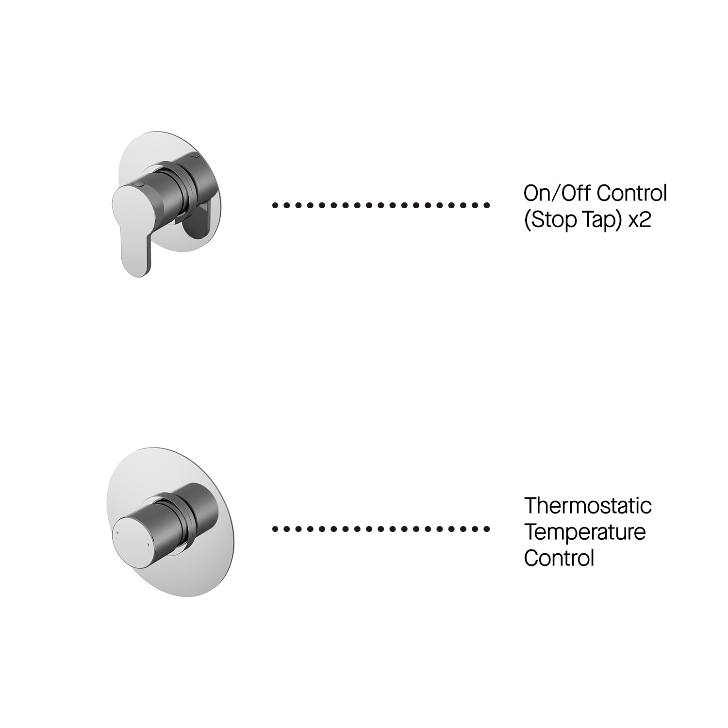 Flexible design, giving you the opportunity to position the individual products to your own requirements. Beautiful Chrome Finish. Luxury Designs . Thermostatic temperature control. Divert between outlets.