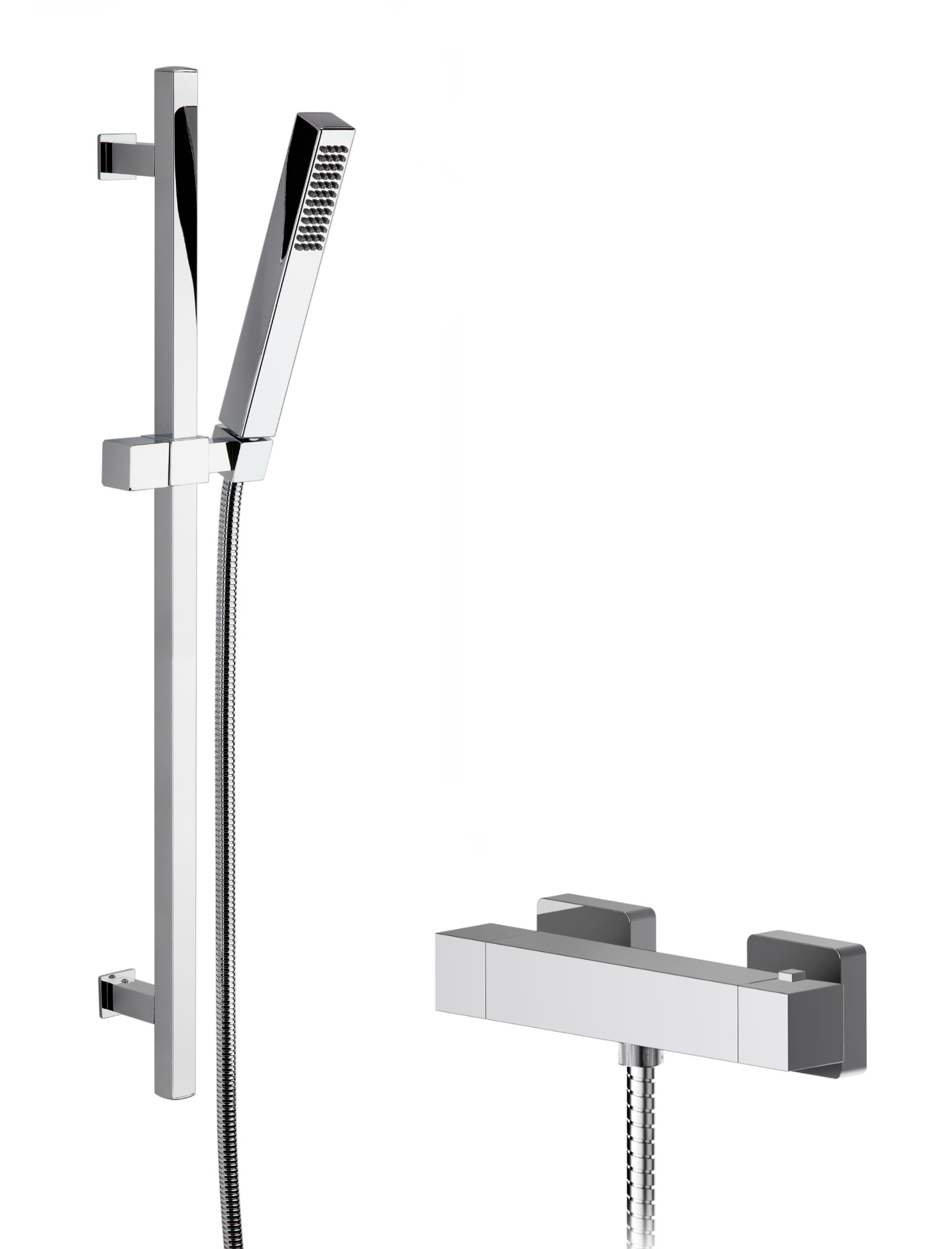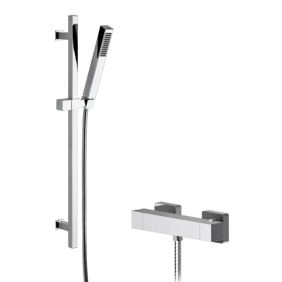 nuie Thermostatic Square Bar Valve & Single Function Slide Rail Shower Kit - Chrome