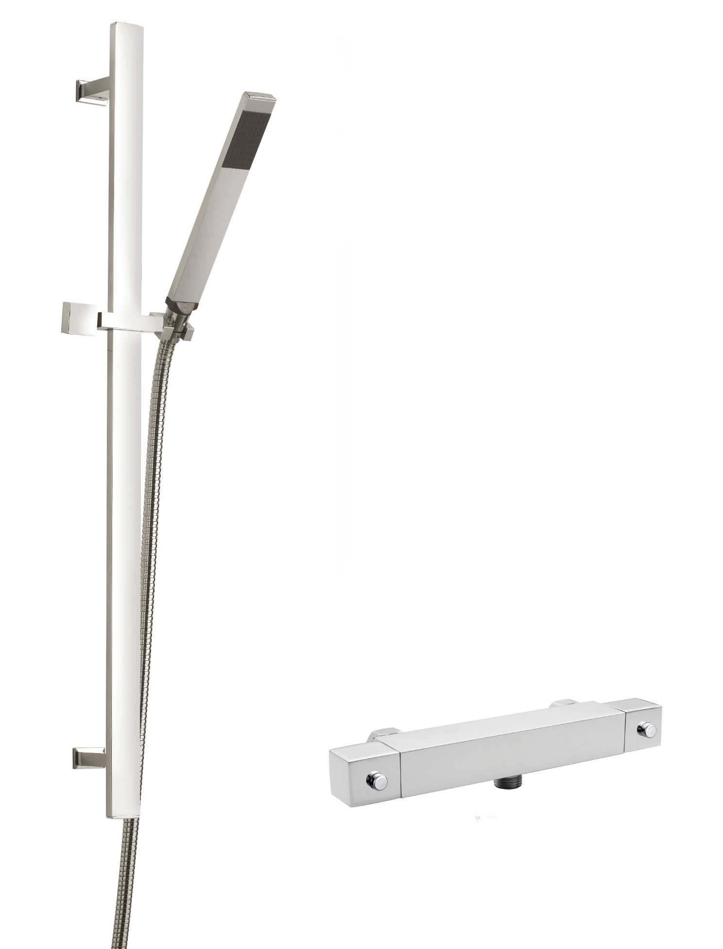 nuie Thermostatic Square Bar Valve & Single Function Slide Rail Shower Kit - Chrome