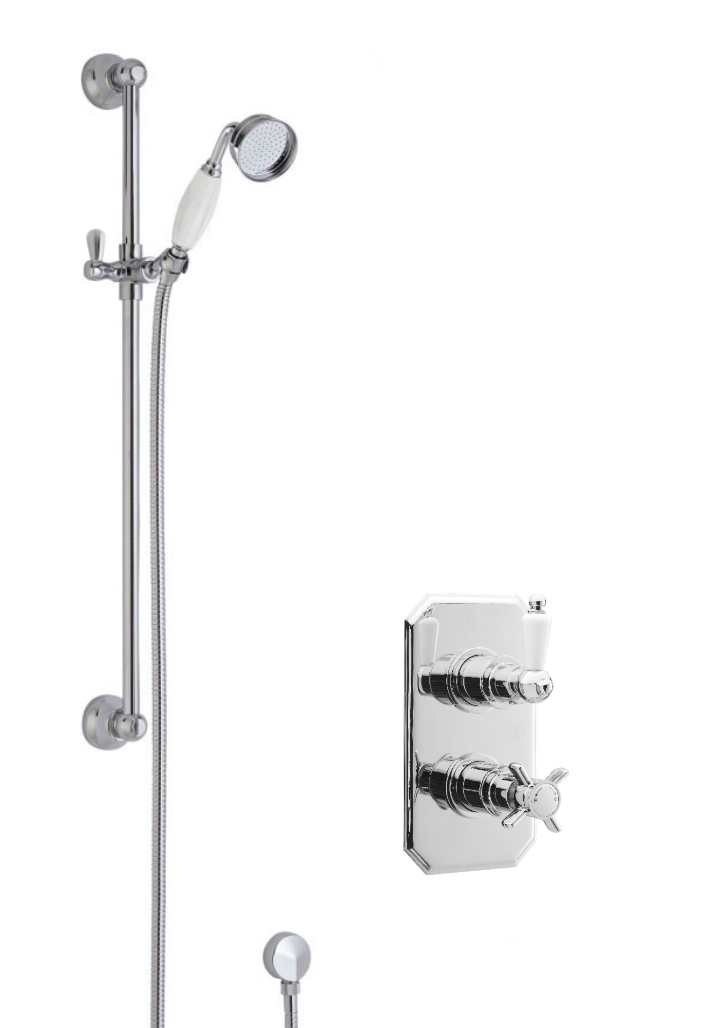 Edwardian Traditional Thermostatic Concealed Twin Valve & Single Function Slider Rail Kit & Outlet Elbow