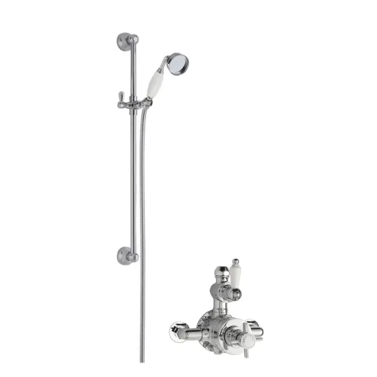 nuie Edwardian Traditional Twin Exposed Valve & Single Function Slide Rail Shower Kit - Chrome/White
