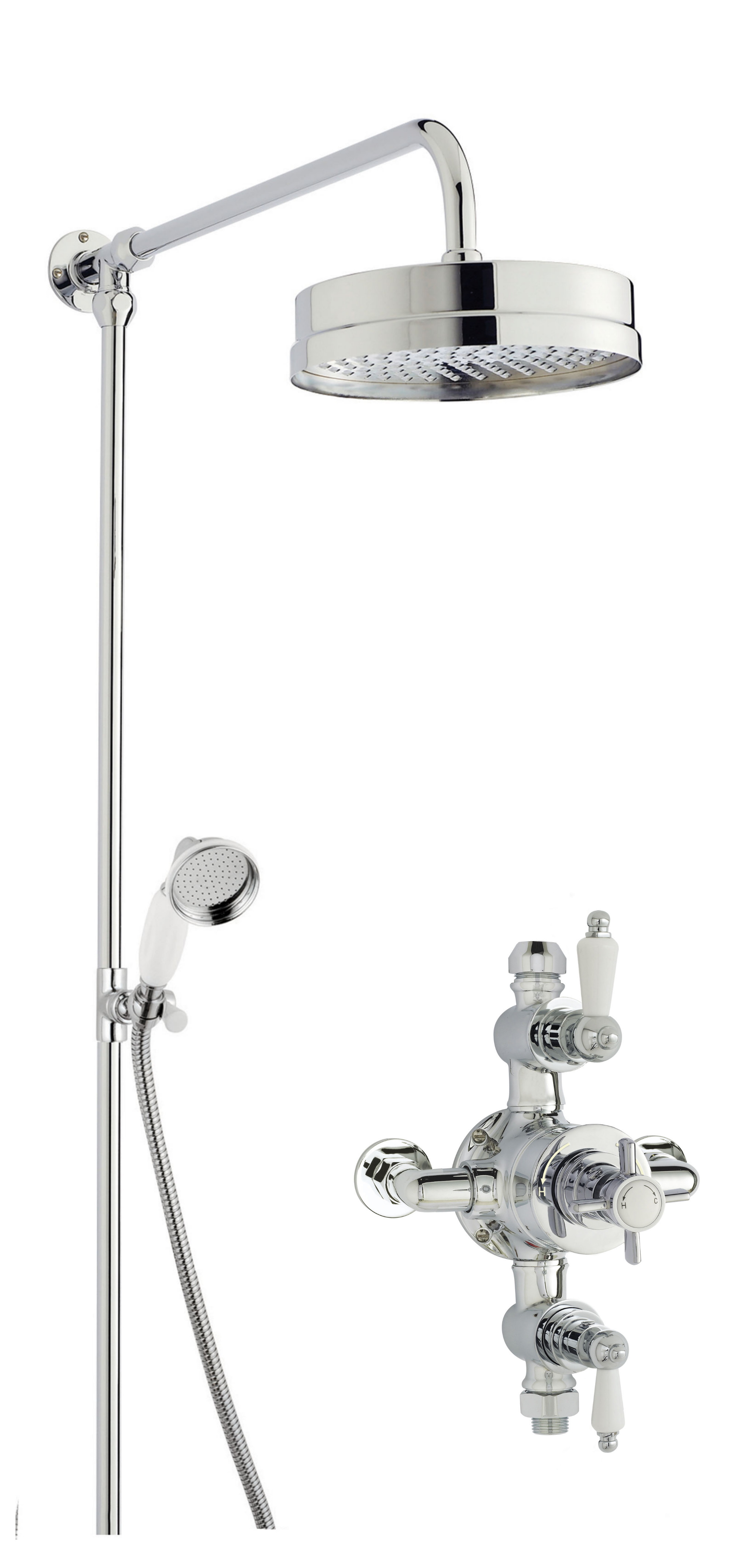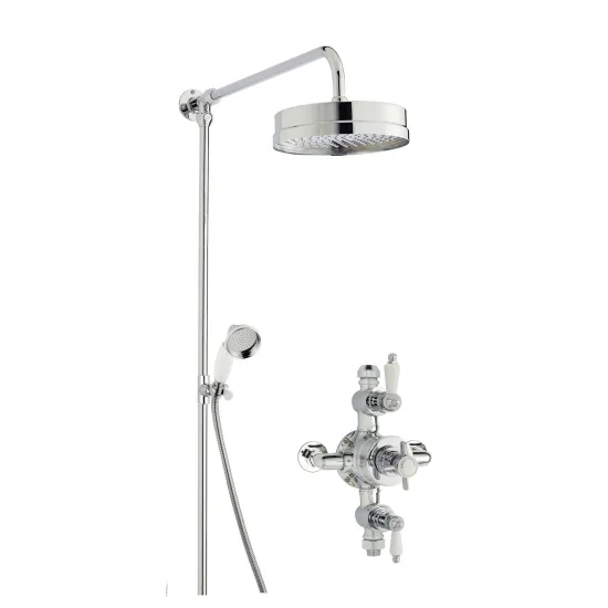 nuie Edwardian Traditional Triple Exposed Valve & Rigid Riser Kit Shower Kit - Chrome/White