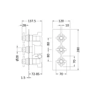Tec Crosshead Twin Thermostatic Shower Valve With Diverter Brushed Brass