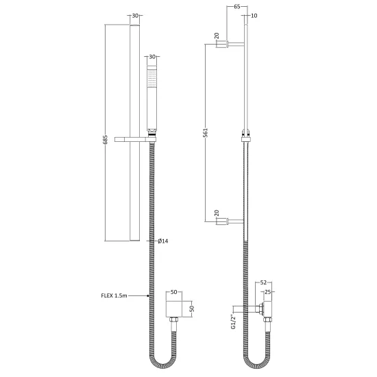 Minimalist sleek design with brushed pewter finish. Single function square handset. Manufactured from high quality brass & ABS. Easy clean shower head.
