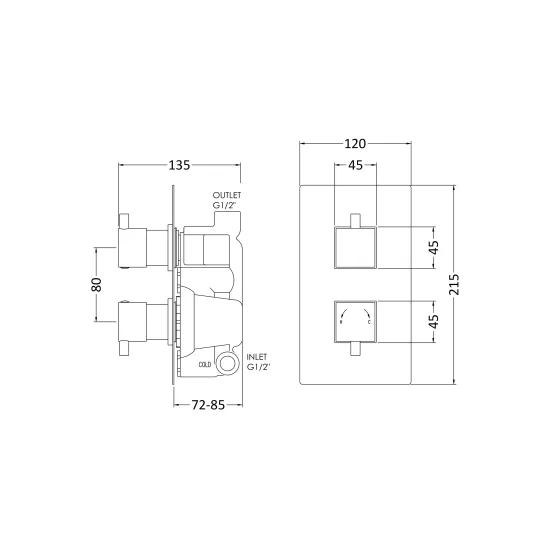 Minimalist sleek design. Can be fitted vertically or horizontally. Accurate flow control. Thermostatic control to +/- 2 degree - even if the water pressure fluctuates. Full thermal protection to prevent scalding in the event of hot or cold water shut off. In the event of hot or cold water failure the valve will shut down as per the relevant standard. The unique cartridge is highly resistant to calcium build up - even in hard water areas. Our valves are suitable for use with all systems: gravity fed pumped unvented high pressure or fully modulated combi-boilers. Excellent flow rates - even at low pressure. Our valves can deliver 5.5 litres per minute at 0.1 bar pressure. The cartridge is fully reversible meaning if hot and cold supplies are the wrong way round it doesn't need re-plumbing. Simply remove the cartridge turn 180° and replace. Manufactured from high quality brass & ABS.