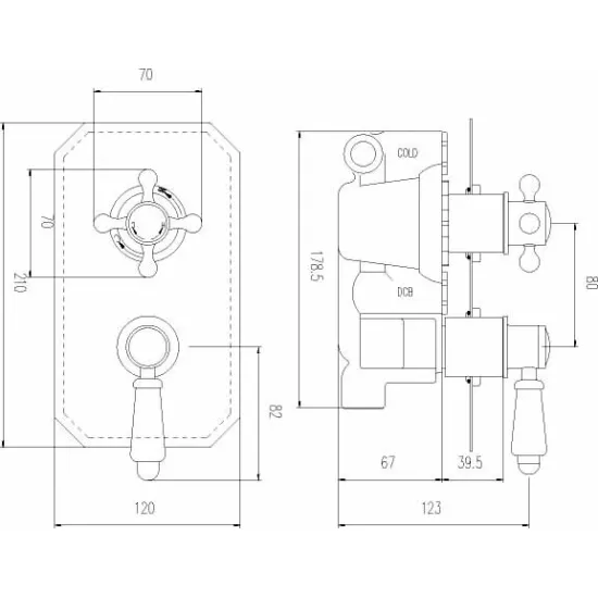 Bring a Victorian sensibility to your bathroom with this traditional shower. Can be fitted vertically or horizontally. Accurate flow control. Thermostatic control to +/- 1 degree - even if the water pressure fluctuates. Full thermal protection to prevent scalding in the event of hot or cold water shut off. In the event of hot or cold water failure the valve will shut down as per the relevant standard. The unique cartridge is highly resistant to calcium build up - even in hard water areas. Our valves are suitable for use with all systems: gravity fed pumped unvented high pressure or fully modulated combi-boilers. Excellent flow rates - even at low pressure. Our valves can deliver 5.5 litres per minute at 0. 1 bar pressure. The cartridge is fully reversible meaning if hot and cold supplies are the wrong way round it doesn't need re-plumbing. Simply remove the cartridge turn 180° and replace. Manufactured from high quality brass & ABS.