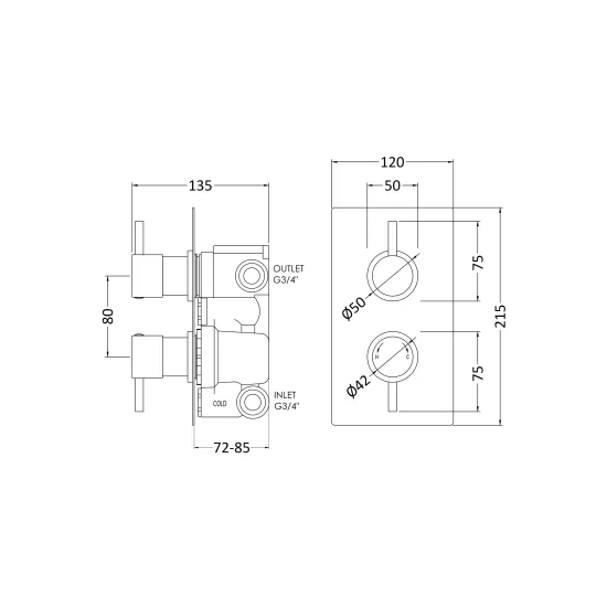 Minimalist sleek design. Can be fitted vertically or horizontally. Accurate flow control. Thermostatic control to +/- 2 degrees even if the water pressure fluctuates. Full thermal protection to prevent scalding in the event of hot or cold water shut off. In the event of hot or cold water failure the valve will shut down as per the relevant standard. The unique cartridge is highly resistant to calcium build up - even in hard water areas. Our valves are suitable for medium pressure water systems. The cartridge is fully reversible meaning if hot and cold supplies are the wrong way round it doesn't need re-plumbing. Simply remove the cartridge turn 180° and replace. Manufactured from high quality brass & ABS.