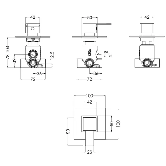 nuie Sanford Concealed Diverter 2/3/4 Way - Chrome
