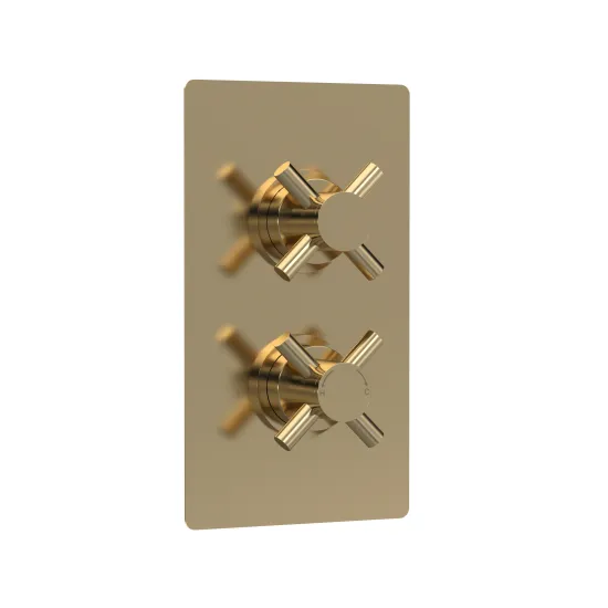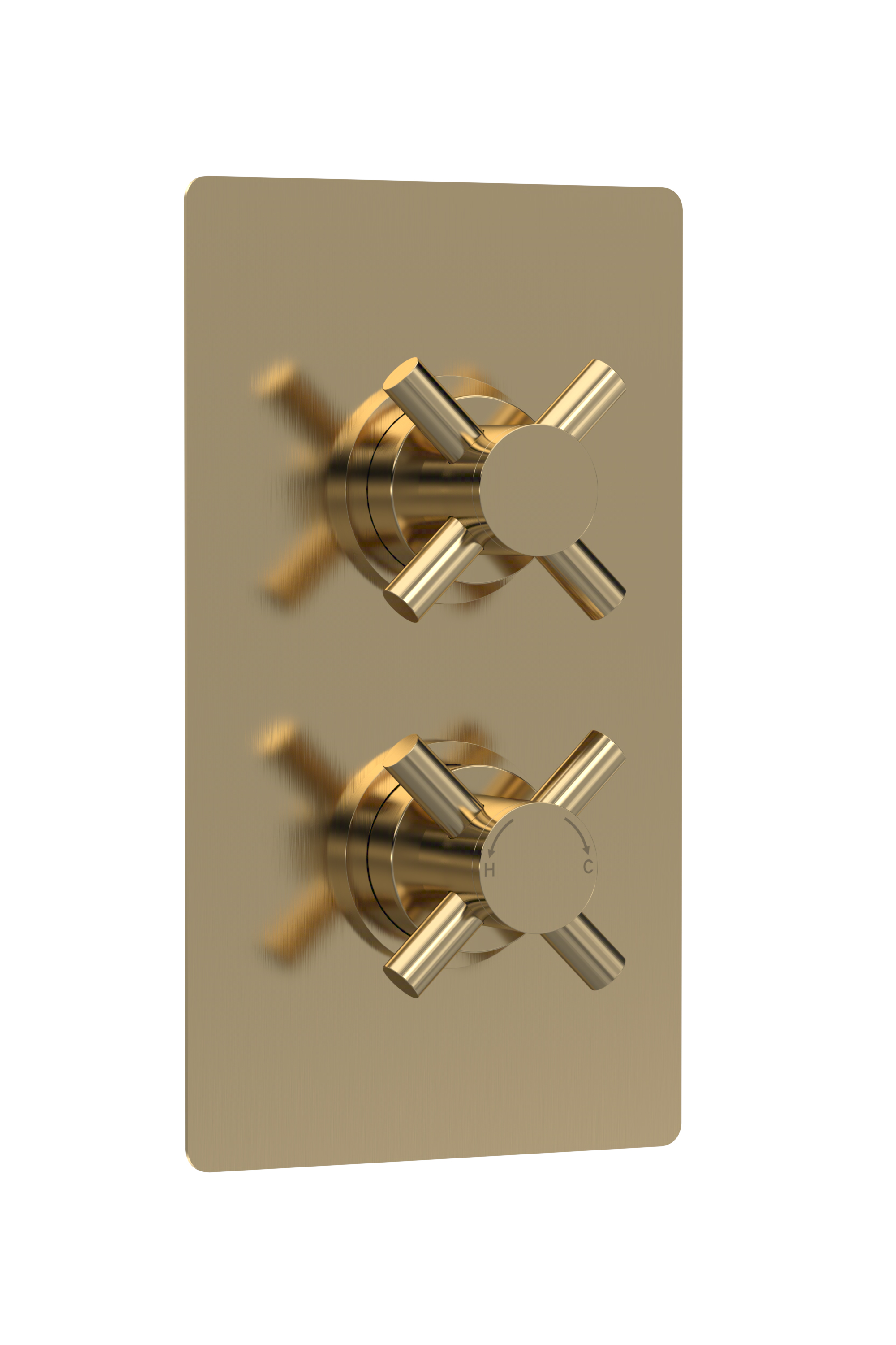 Tec Crosshead Twin Thermostatic Shower Valve Brushed Brass