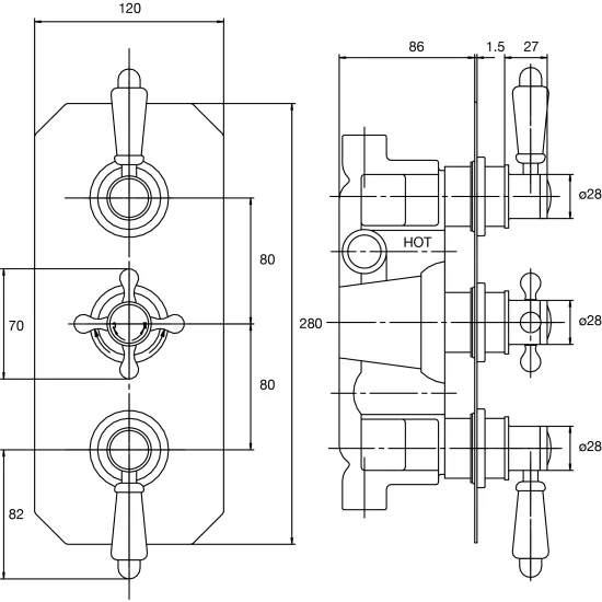 Bring a Victorian sensibility to your bathroom with this traditional shower. Can be fitted vertically or horizontally. Accurate flow control. Thermostatic control to +/- 2 to 3 °C even if the water pressure fluctuates. In the event of hot or cold water failure, the valve will shut down the water supply providing full thermal protection and prevents scalding. The unique cartridge is highly resistant to calcium build up - even in hard water areas. Our valves are suitable for use with all systems: gravity fed pumped unvented high pressure or fully modulated combi-boilers. Excellent flow rates - even at low pressure. The cartridge is fully reversible meaning if hot and cold supplies are the wrong way round it doesn't need re-plumbing. Simply remove the cartridge turn 180° and replace. Manufactured from high quality brass & ABS.