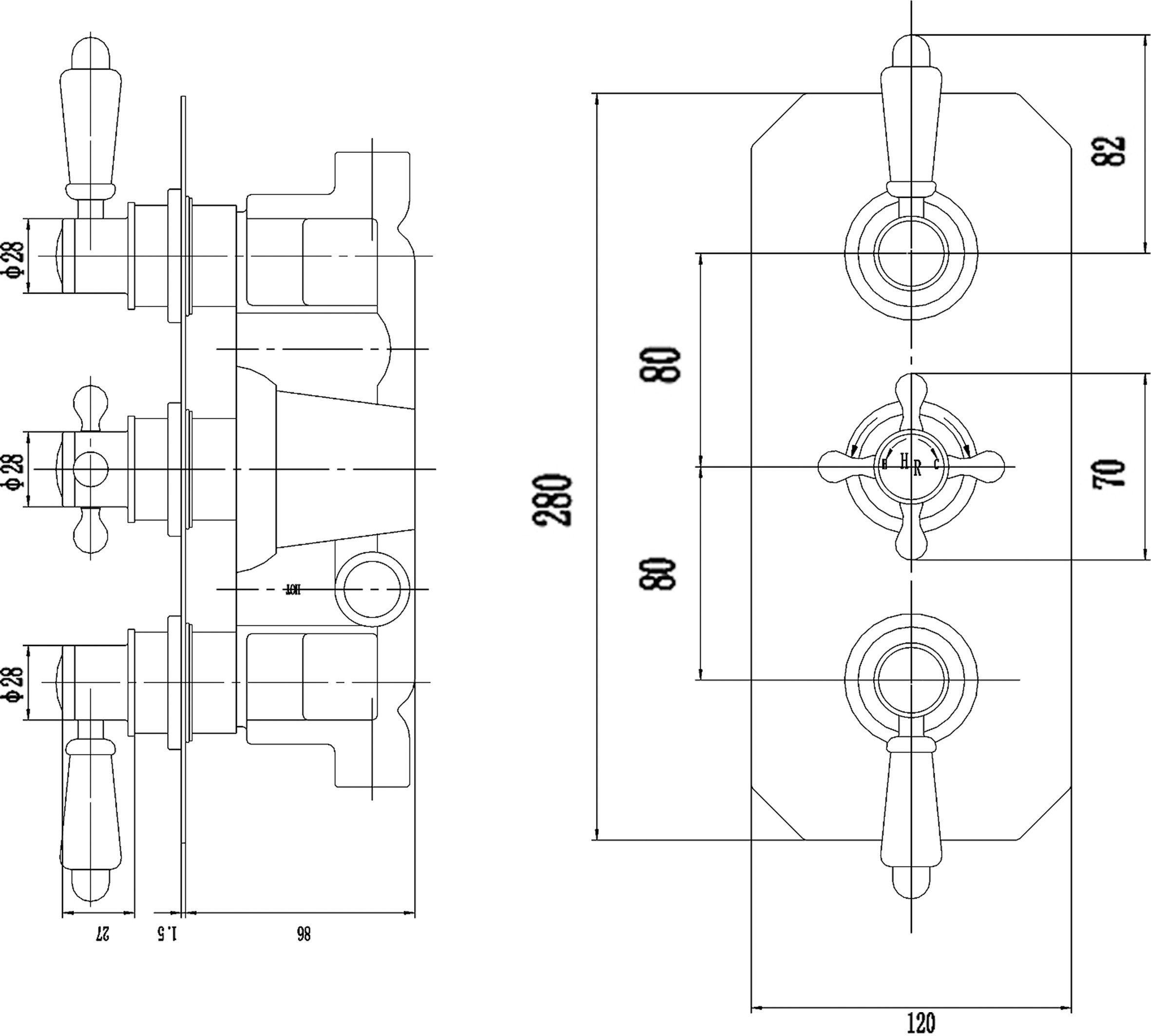 Old London White Topaz Triple Thermostatic Shower Valve - Chrome / White