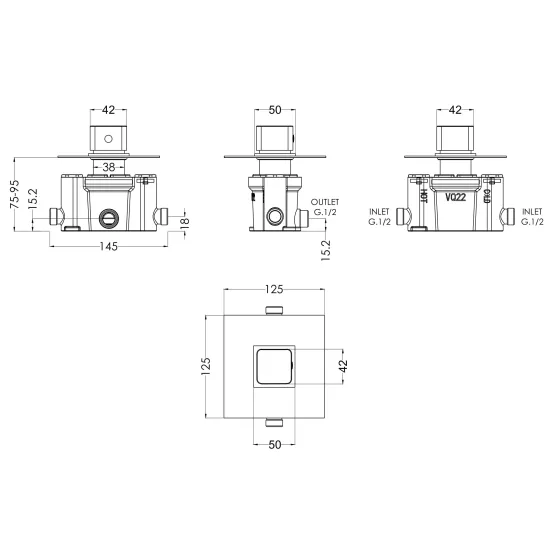 nuie Windon Thermostatic Temperature Control Valve - Chrome