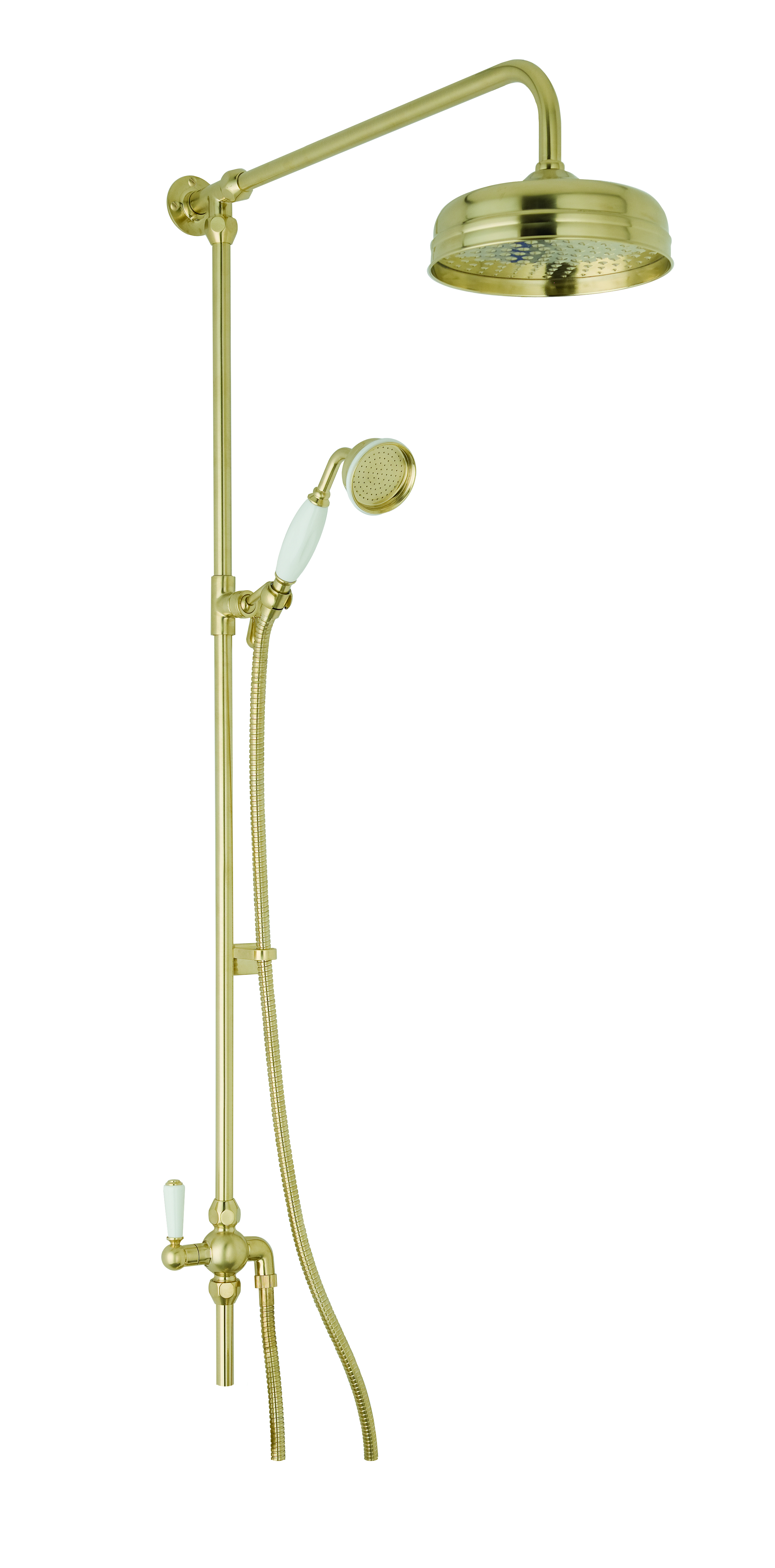 BC Designs Victrion Superbe Fixed Rigid Riser Kit with 8" Shower Head and Handset - Brushed Gold