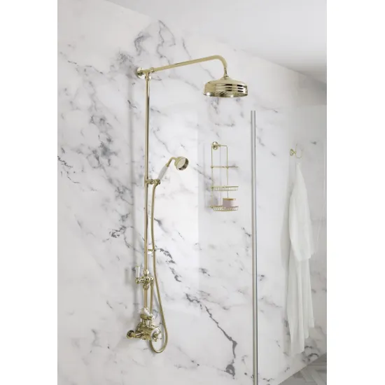 BC Designs Victrion Superbe Fixed Rigid Riser Kit with 8" Shower Head and Handset - Gold