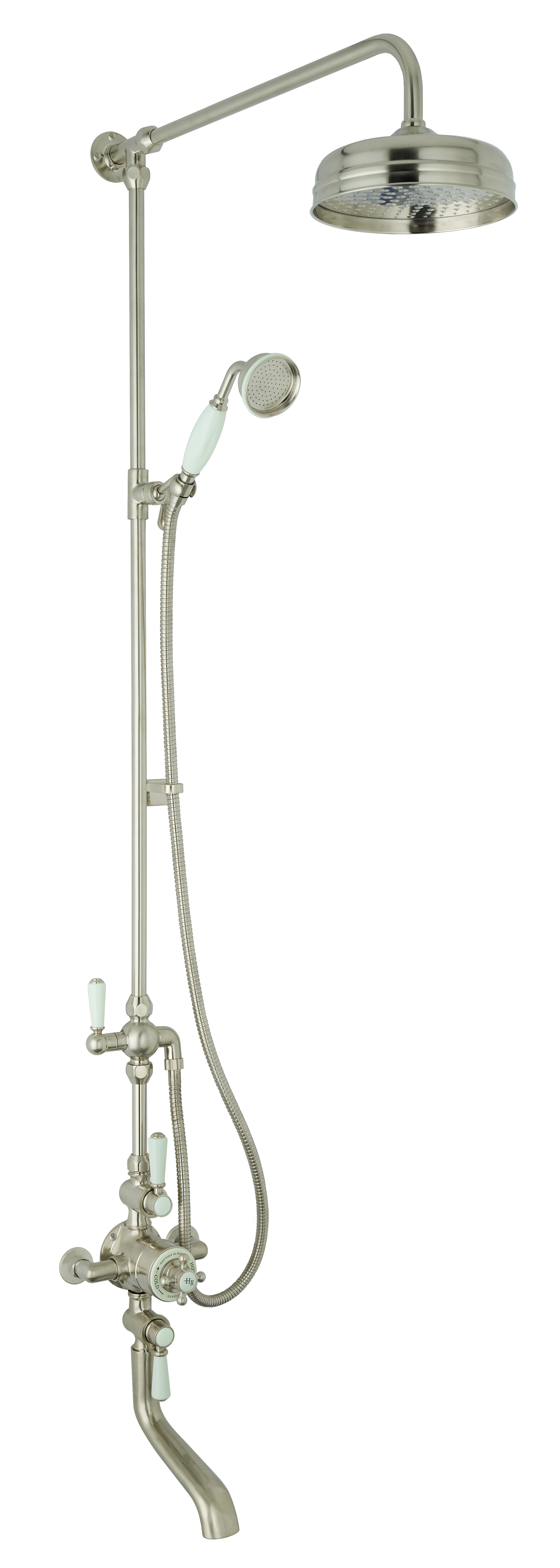 BC Designs Victrion Triple Exposed Thermostatic Valve, Spout Bath Filler and 8" Head - Brushed Nickel