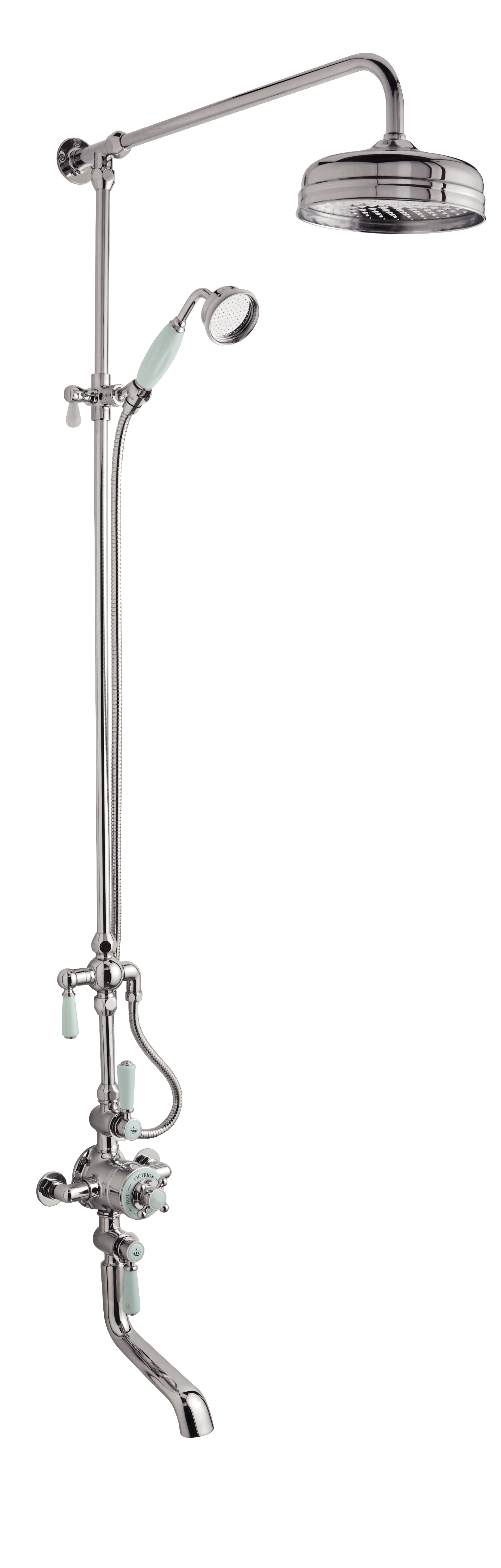 Victrion Triple Exposed Thermostatic Valve, Spout Bath Filler and 8" Head