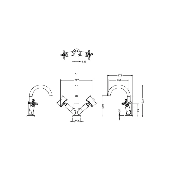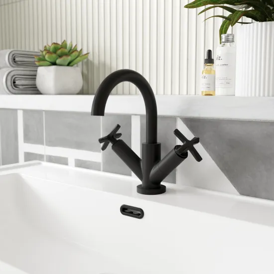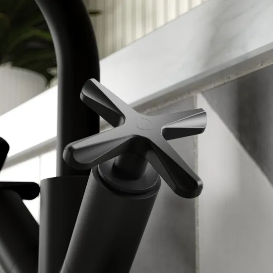 Timeless symmetry with crosshead . Swivel spout. Ceramic disc technology for long life and smooth operation. High quality brass internals with luxury matt black finish. WRAS approved.