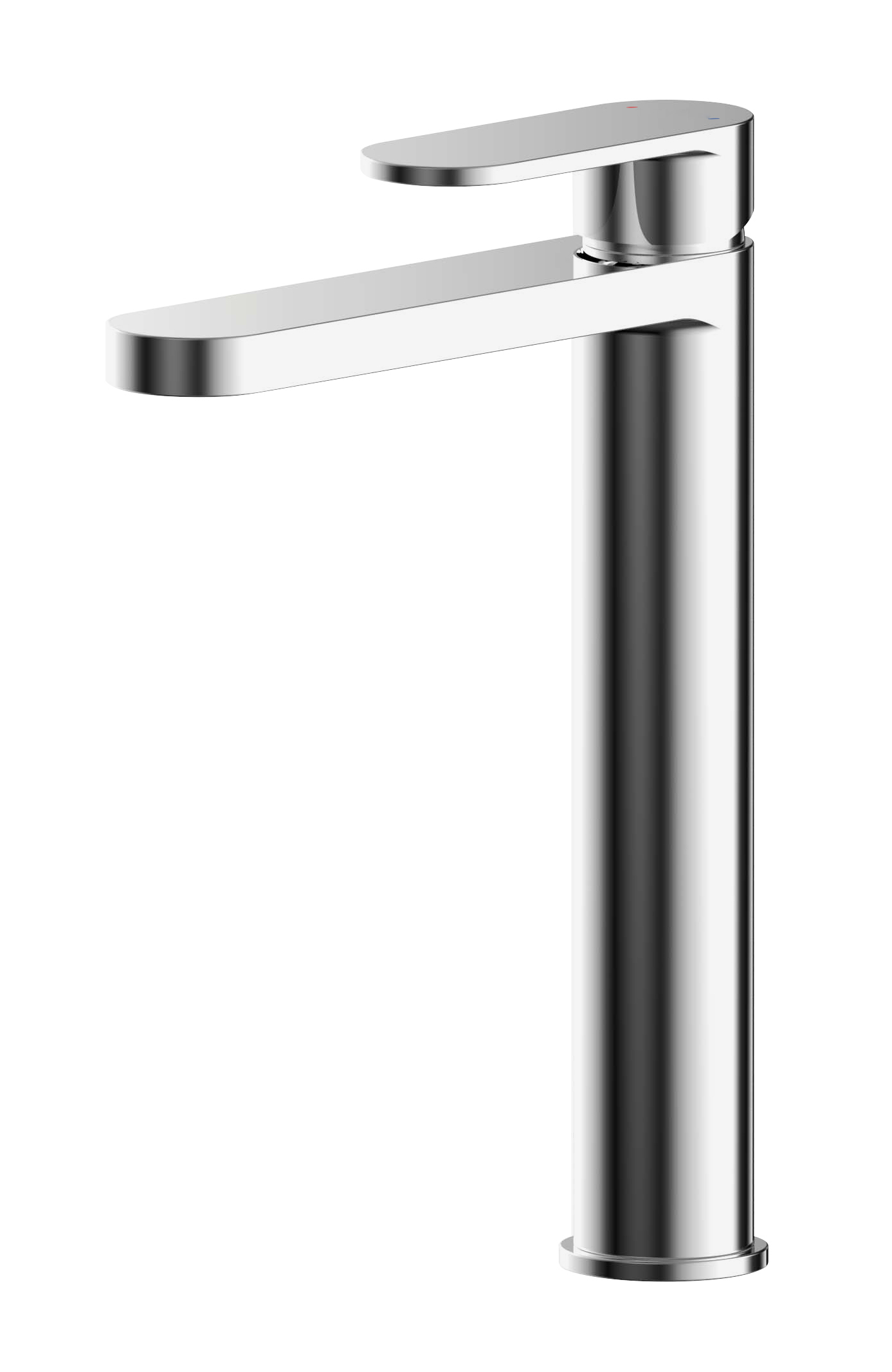 Stunning contemporary curved design with luxury chrome finish. Ceramic disc technology provides smooth operation and long life. Excellent flow rates even at low pressure. Sleek high-rise design makes this tap perfect for use with countertop vessel basins.