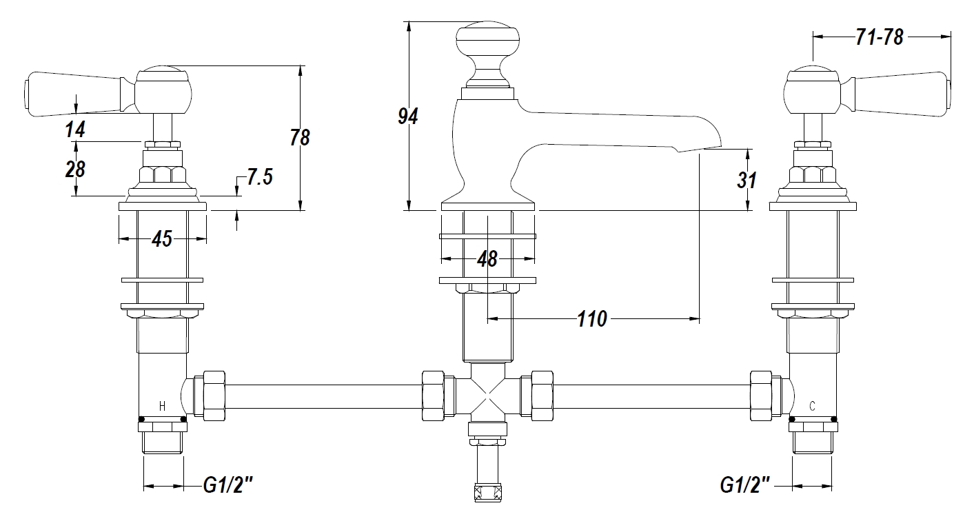 White Topaz With Lever Handle 3 Tap Hole Basin Mixer