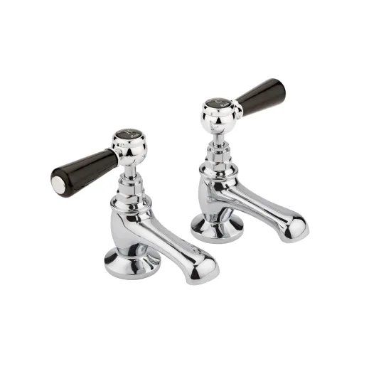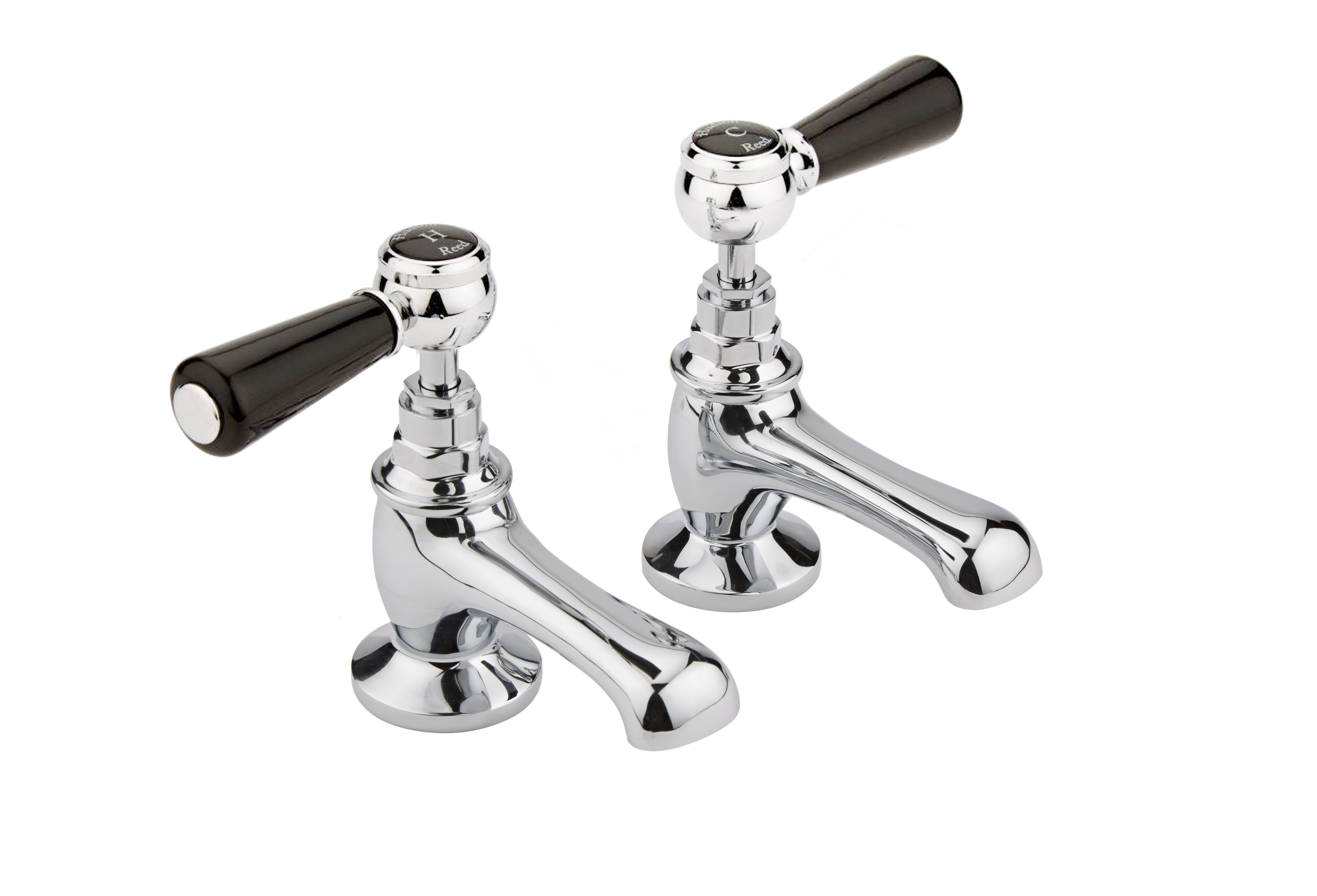 Old London Black Topaz With Lever Handle Basin Taps - Chrome / Black