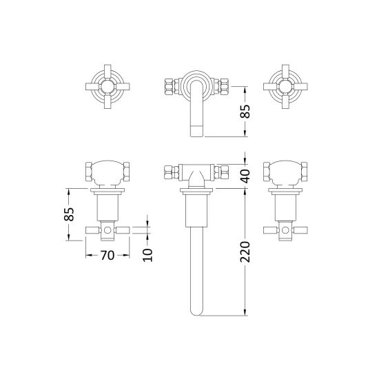 Tec Crosshead Wall Mounted Basin Mixer Matt Black