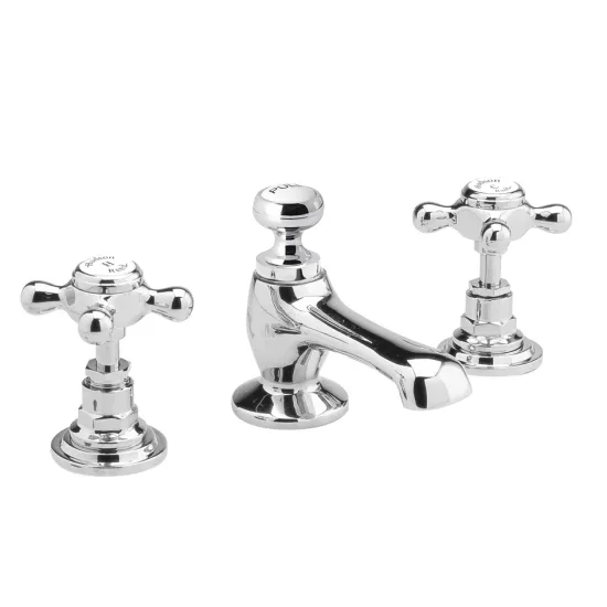 Old London White Topaz With Crosshead Handle 3 Tap Hole Basin Mixer - Chrome / White